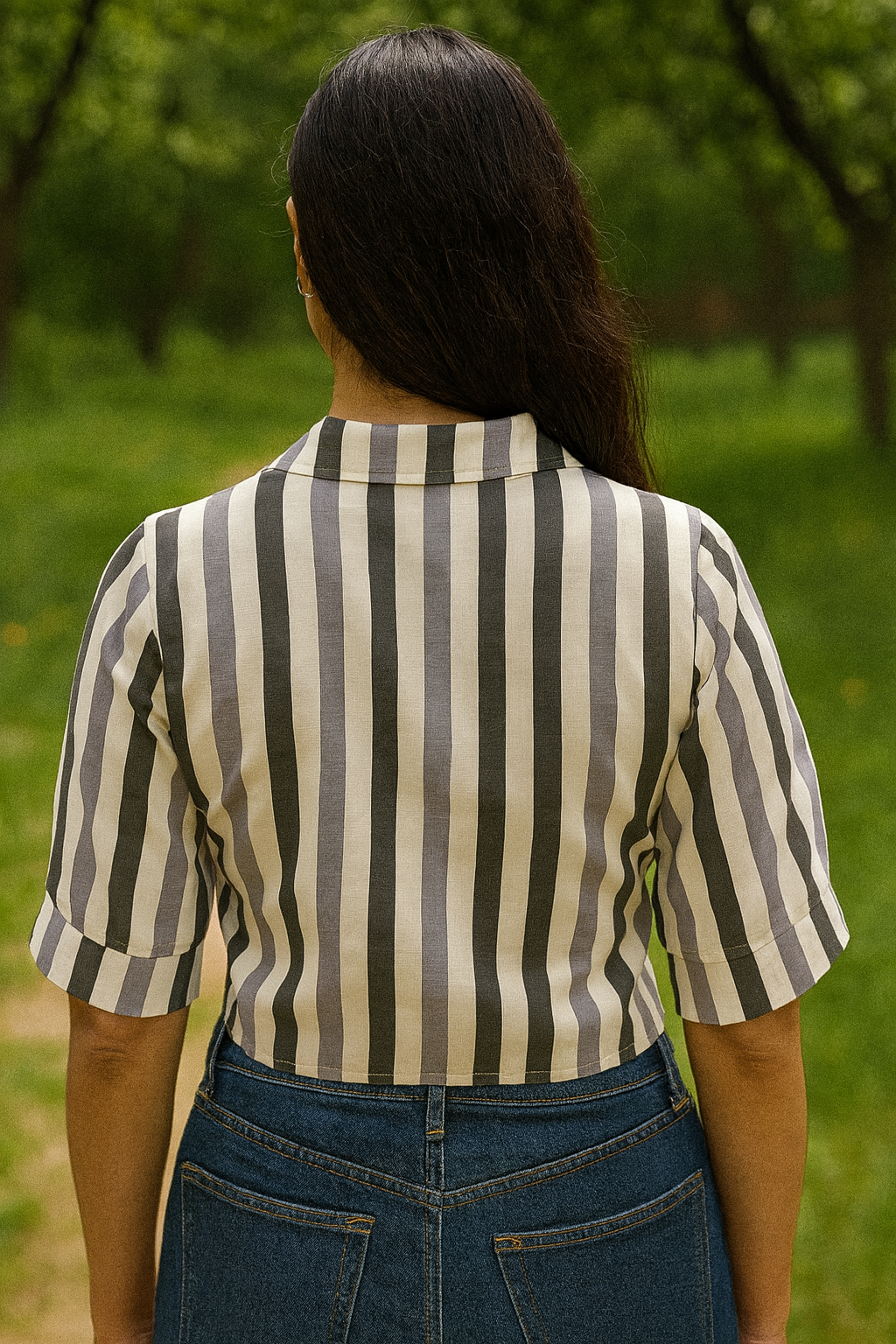 Crafted from premium cotton, this striped shirt seamlessly transitions from campus to conference room. The classic black and blue stripe pattern offers versatile styling options that pair effortlessly with jeans, trousers, or skirts. The relaxed fit ensures comfort during long days, while the quality fabric maintains its shape and color through regular wear. Perfect for building a practical wardrobe that balances professionalism with everyday ease.